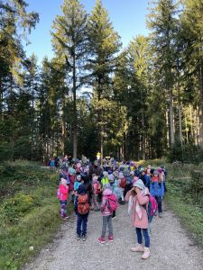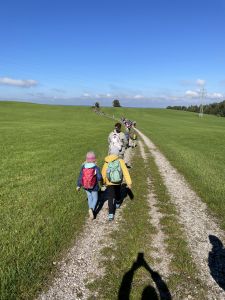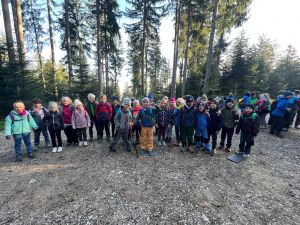 Am 2.10.2025 unternahmen alle Klassen der Warngauer Schule einen Ausflug auf den Taubenberg. Wir starteten bei Nebel und kühlen Temperaturen, was allerdings der Freude bei dem gemeinsamen Ausflug keinen Abbruch tat. Es war schön zu beobachten, wie sich die Kinder jahrgangsübergreifend mischten, sich gegenseitig halfen und spielten. Endlich bot sich auch mal wieder Gelegenheit, mit der ein oder anderen Lehrkraft ausführlicher zu plaudern.