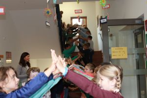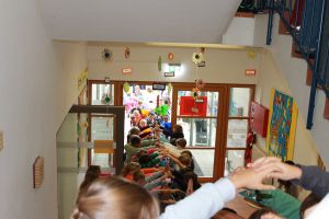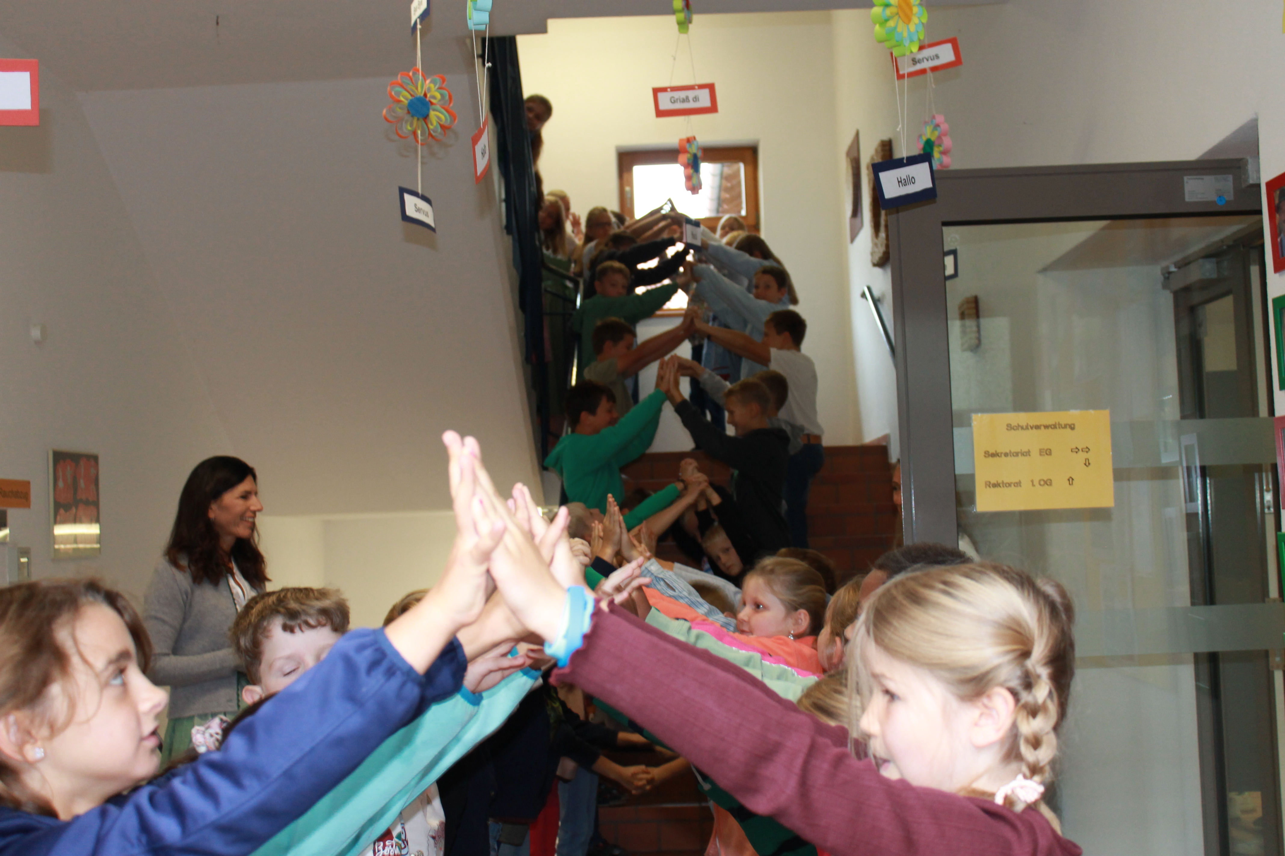 Anschließend bildeten die Schülerinnen und Schüler der 2., 3. und 4. Klassen ein Spalier und begleiteten die neuen Mitschülerinnen und Mitschüler zu ihren Klassenzimmern, wo der Unterricht beginnen konnte.